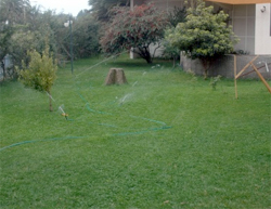La hora ideal para hacerlo es entre las 4.00 y las 8.00 de la mañana. A esta hora el viento no interfiere en el riego y no hay prácticamente evaporación de agua. Una de las complicaciones que ocasiona el riego en horas de la tarde, es la creciente incidencia de enfermedades. Este inconveniente puede reducirse regando únicamente cuando el césped lo necesita y regando esporádica pero profundamente. Regar durante el medio día no es efectivo ya que gran cantidad de agua se evapora siendo por consiguiente muy difícil humedecer la tierra adecuadamente. Si bien no se recomienda regar en estas horas, vale aclarar que hacerlo, no provoca la quemadura del pasto. |
